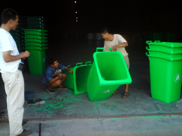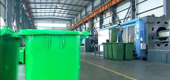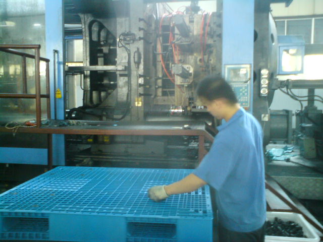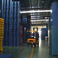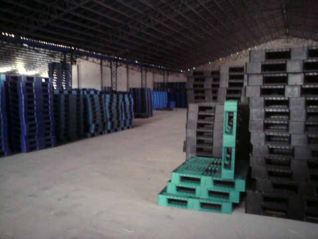 plastic pallets and trash container warehouse